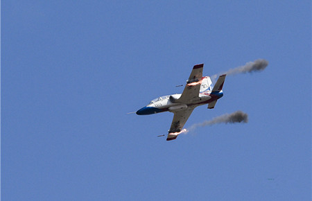 孟夏时节,燕赵腹地硝烟骤起,空军石家庄飞行学院某旅数架战机编队出航,装载炸弹、火箭弹和航炮等多种武器对“敌”地面目标实施精准打击。