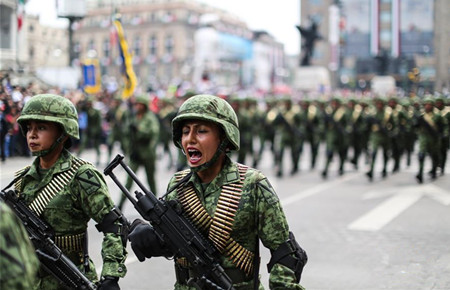 9月16日,在墨西哥首都墨西哥城,士兵参加独立日阅兵。 当日是墨西哥独立纪念日,墨西哥举行庆祝独立208周年阅兵。