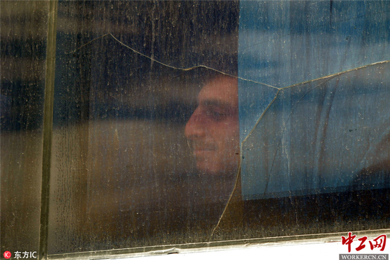 当地时间2018年4月9日,叙利亚东古塔地区,反政府武装“伊斯兰军”的武装人员及其家属从杜马陆续撤离。据悉,他们将分批从瓦菲丁人道主义通道撤离,前往邻近土耳其的边境地区杰拉卜卢斯。