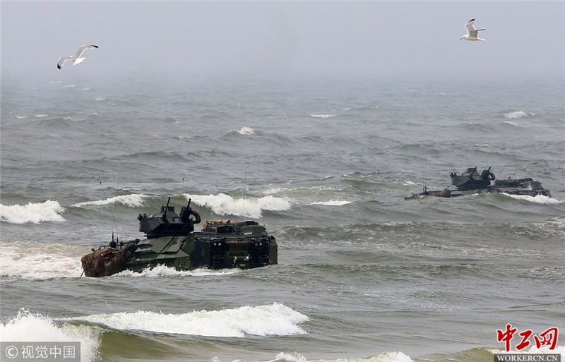 当地时间2018年6月4日,立陶宛Nemirseta,北约士兵在当地参加波罗的海军事演习,并演练两栖登陆,该演习将一直持续到6月15日。