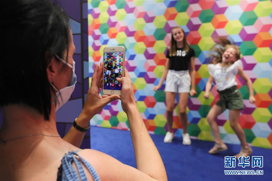 8月7日,一名女子在比利时布鲁塞尔的“微笑畅游”博物馆内为两名女孩录制短视频。 近日,受新冠疫情影响曾一度关闭的布鲁塞尔“微笑畅游”博物馆重新开放。这家博物馆设置了数十个创意场景,吸引和鼓励参观者使用抖音(TikTok)等社交软件创作并分享“网红”风格的图片和短视频作品。 新华社记者 郑焕松 摄
