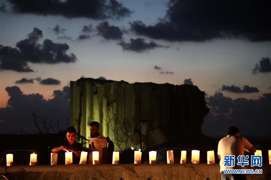8月9日,人们在黎巴嫩贝鲁特港口区附近点燃蜡烛,为爆炸伤亡和失踪人员祈福。 新华社发(比拉尔·贾维希摄)
