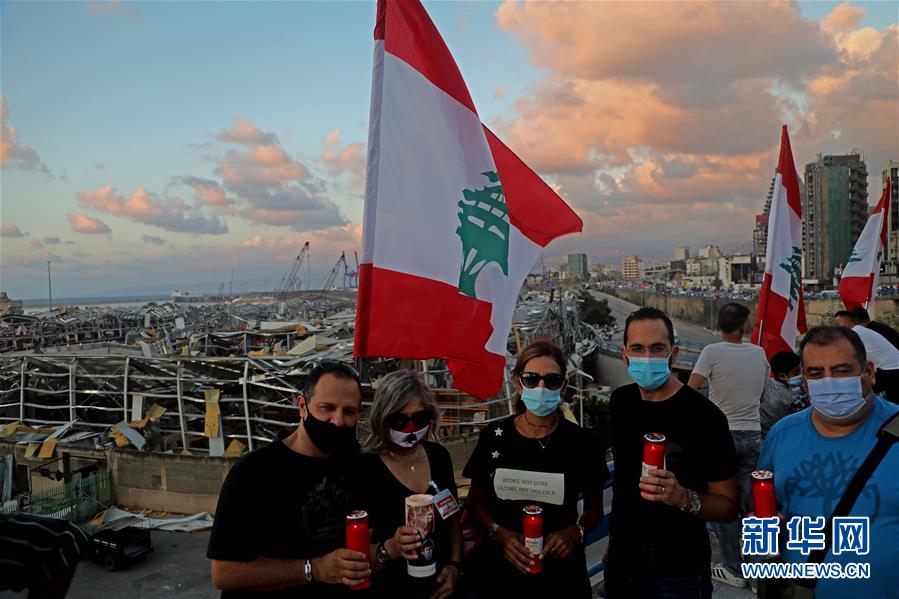 8月9日,人们在黎巴嫩贝鲁特港口区附近点燃蜡烛,为爆炸伤亡和失踪人员祈福。新华社发(比拉尔·贾维希摄)