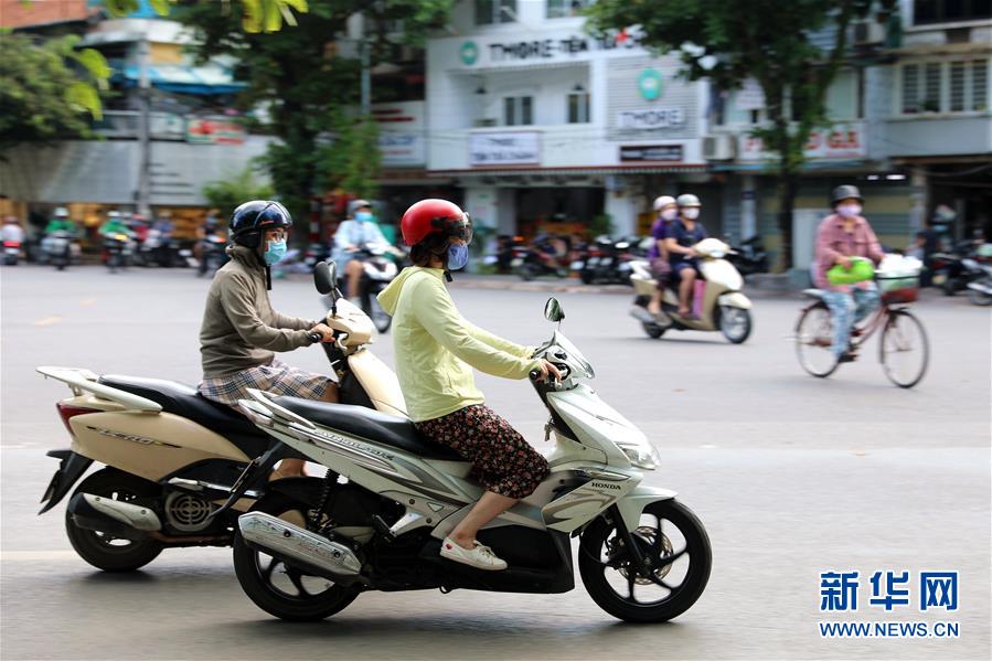 8月8日,越南首都河内的民众戴口罩出行。 新华社记者 王迪 摄