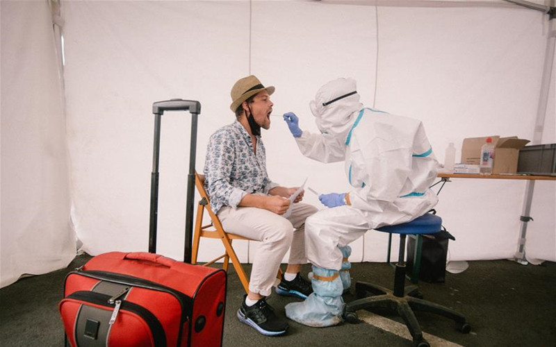 德国科隆:旅客在机场接受新冠检测