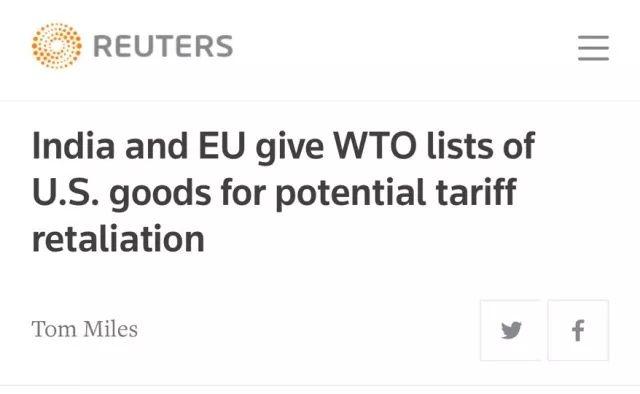 路透社21日报道,世界贸易组织(WTO)的文件显示,印度已向WTO提交可能被加征高额关税的美国产品清单,以报复美国对进口钢铝产品加征关税的举措。印度铝产品及钢铁产品分别面临美国额外征收的3116万美元和1.34亿美元关税,印度因此将进口自美国的部分产品列为征收报复性关税的潜在目标。欧盟21日证实向WTO提交了一份关税报复清单,同样意在反制美方对欧盟加征的钢铝关税。这两份清单都将在一个月内生效。