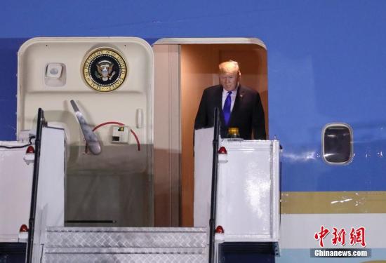 美国总统特朗普于当地时间6月10日晚乘坐“空军一号”专机抵达新加坡巴耶利峇空军基地。中新社记者 刘震 摄