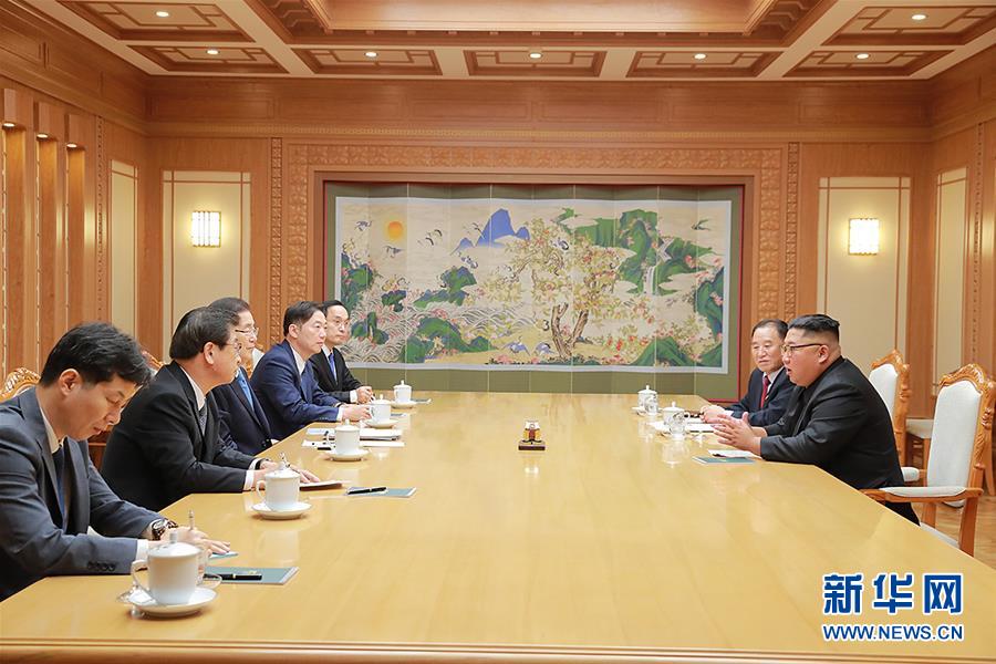 朝鲜最高领导人金正恩5日会见到访的韩国总统特使团时重申了朝方有关朝鲜半岛无核化的坚定意志,并与韩方就预定于本月举行的平壤北南首脑会晤相关日程和议题达成共识。