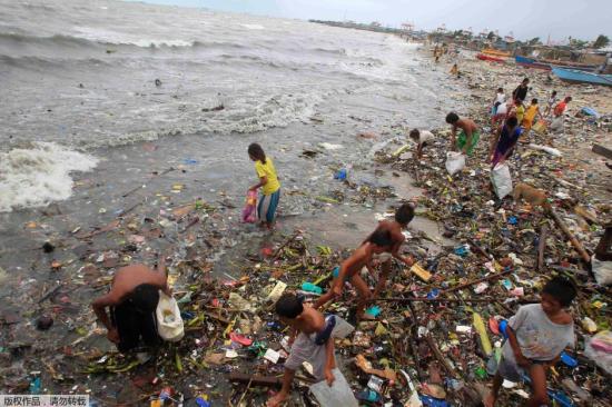资料图:台风袭击菲律宾过后海面一片狼藉。
