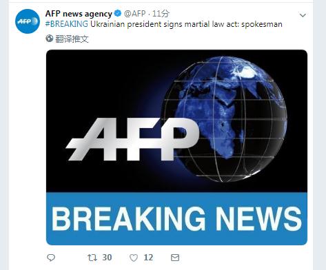 【环球网快讯】法新社刚刚消息,发言人称,乌克兰总统波罗申科签署了戒严令。