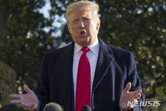 当地时间6日,特朗普出发前回答记者提问。(图片:纽西斯通讯社)