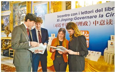 参加读者会的意大利学生正在阅读《习近平谈治国理政》意大利文版。