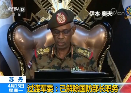 苏丹过渡军事委员会一名发言人14号表示,已经解除了苏丹国防部长伊本⋅奥夫的职务,并任命了一名新的情报部门负责人。