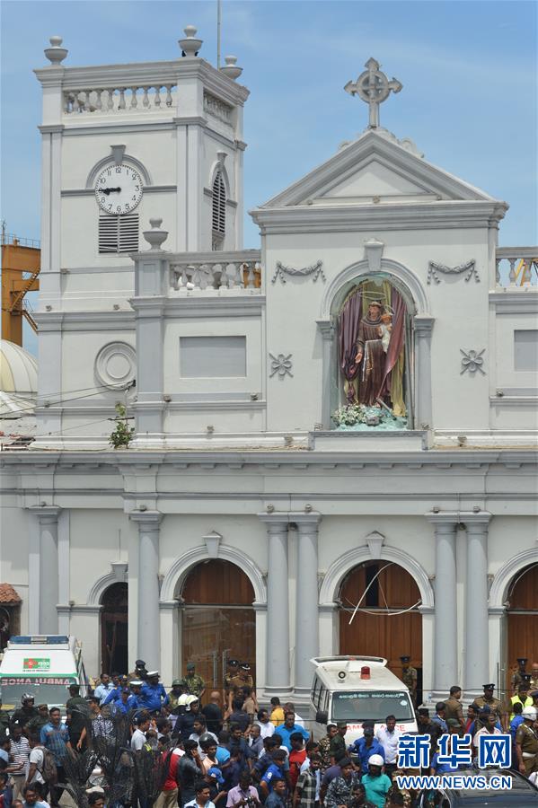 4月21日,在斯里兰卡科伦坡,人们聚集在发生爆炸的圣安东尼教堂外。 新华社发(哈普拉彻奇摄)