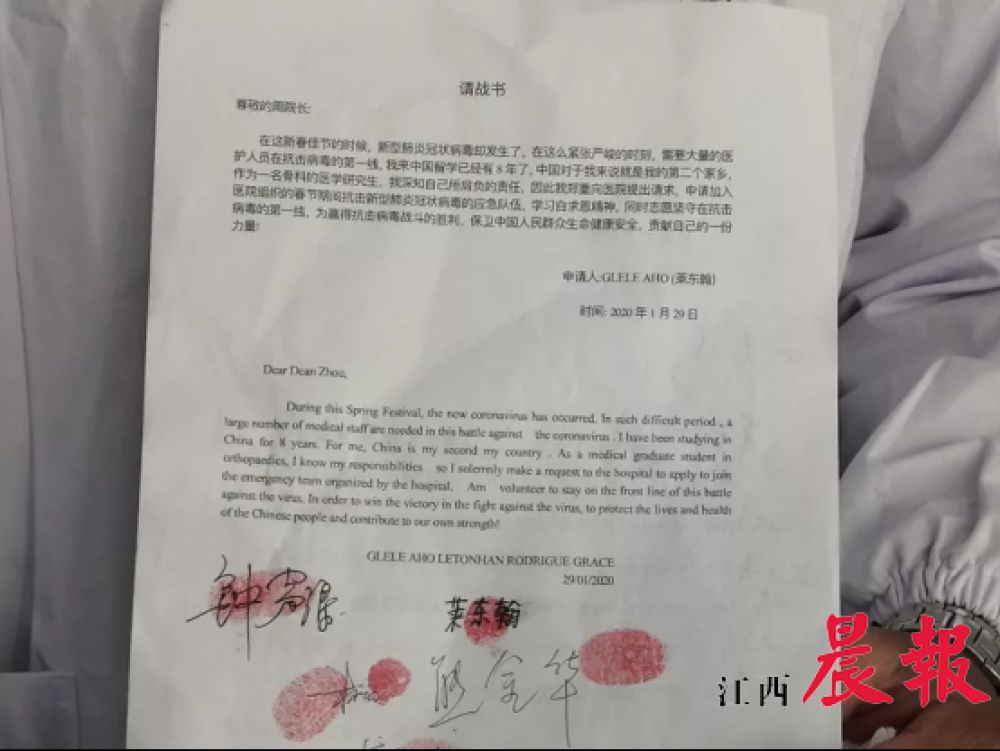 写下中英文请战书,志愿坚守在抗击病毒第一线!