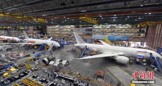 资料图:美国西雅图,波音公司埃弗雷特工厂波音787组装线。中新社发 毛建军 摄