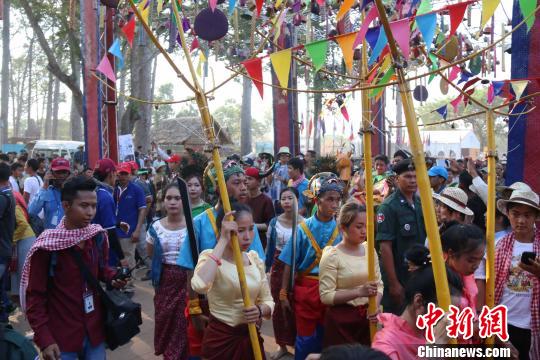 柬埔寨民俗文化巡展吸引无数游客围观。 廖敏佳 摄