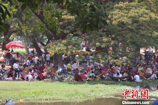 中新网暹粒4月16日电 题:柬埔寨新年成国际狂欢派对 本地民众“偷闲”出游