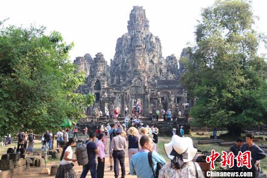 图为大批国际游客“吴哥宋干节”期间参观游览吴哥景区。 廖敏佳 摄