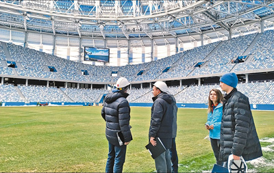 由国际足联和2018年俄罗斯世界杯组委会官员带领的专家组,正对下诺夫哥罗德体育场进行检查。