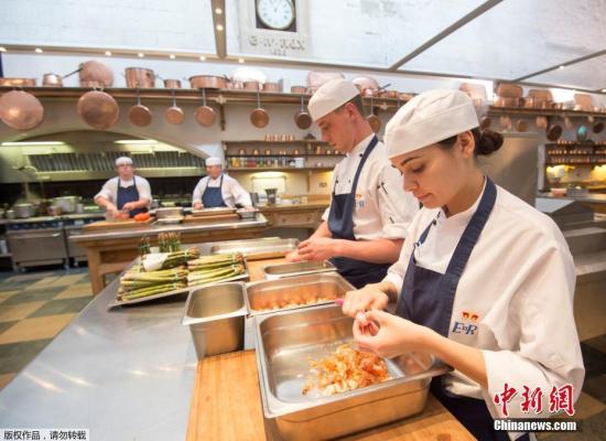 当地时间2018年5月10日,英国温莎城堡内的皇家厨房正在为哈里王子大婚做准备。