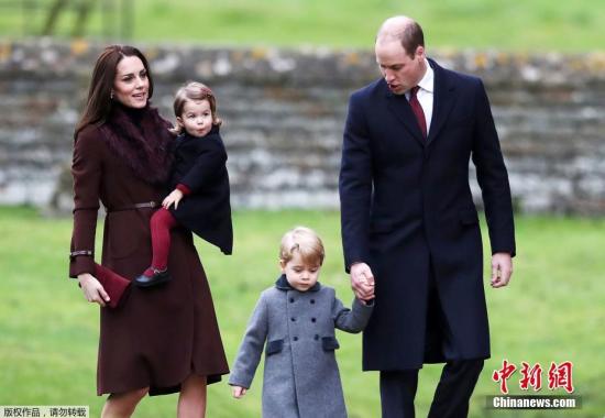 当地时间2016年12月25日,英国伯克郡,威廉一家四口出席圣马克教堂举办的圣诞节活动。