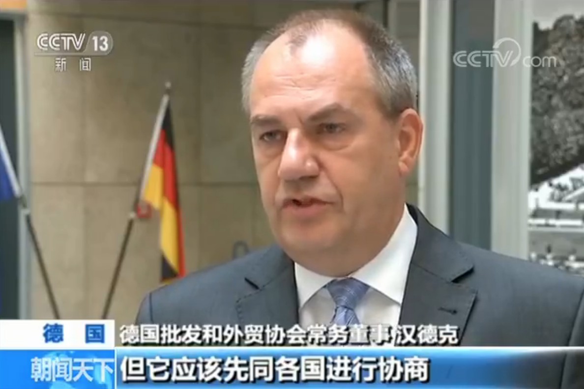 德国批发和外贸协会常务董事 汉德克:如果美国希望改变贸易现状,不是不能理解,但它应该先同各国进行协商,而不能用枪指着我们。这种感觉很糟糕,但我们不能让自己被威慑住。