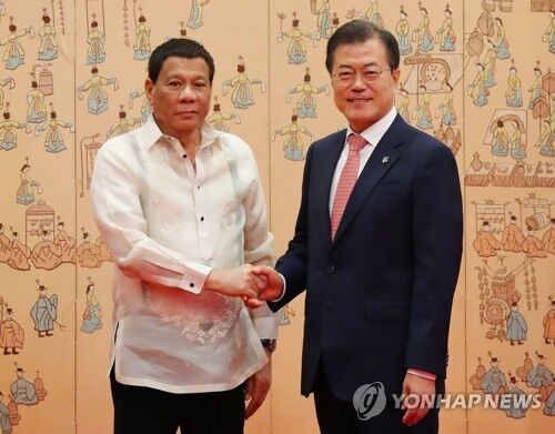 【环球网综合报道】据韩联社6月4日报道,韩国总统文在寅当日在青瓦台会见到访的菲律宾总统罗德里戈·杜特尔特。