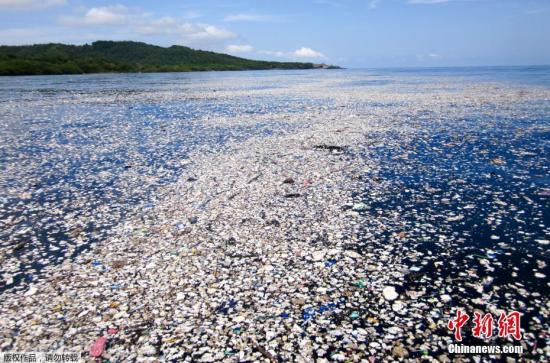 资料图:摄影师Caroline Power在距离洪都拉斯罗阿坦岛仅有15英里远的海域拍摄到令人惊讶的“塑料垃圾海”,被污染的地区有近5英里,令人触目惊心。