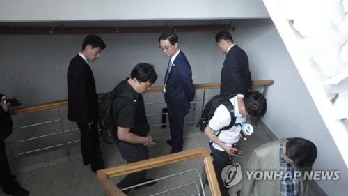6月8日,在朝鲜开城,韩朝联络事务所韩方筹备团成员实地考察韩朝交流协会事务所建筑物地下一层的电力和机械室。(韩联社/韩国统一部提供)