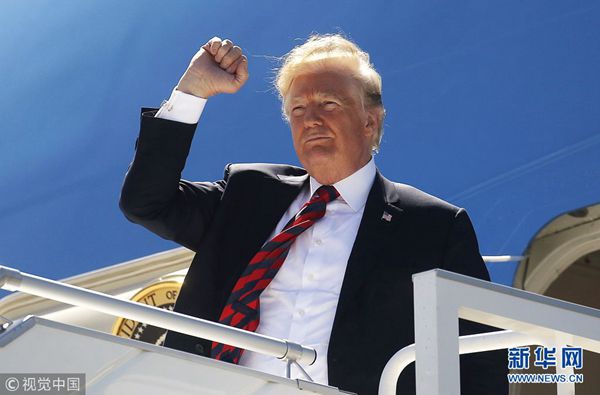 当地时间6月8日,美国总统特朗普抵达加拿大,出席G7峰会。(图片来源:视觉中国)
