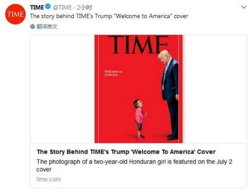21日,《时代》周刊发布了一张7月2日刊的封面照片,照片中,这位小女孩抬头仰望,而特朗普站立在她的上方,背景是一片红色,配字则是“欢迎来到美国”。