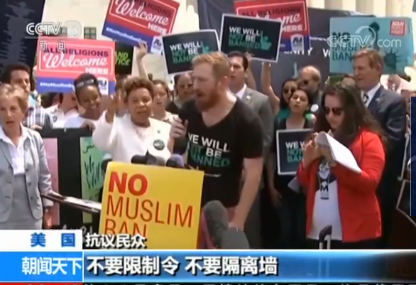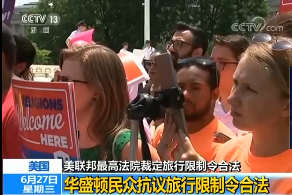 在首都华盛顿,大批民众聚集在联邦最高法院外,抗议者高喊口号,手持各种抗议标语,表达对旅行限制令合法裁定的不满,以及对特朗普主张修建边境隔离墙的反对。有抗议者表示,特朗普的主张和联邦最高法院的裁定是不人道、充满歧视性的法西斯主义,他们会对抗到底。