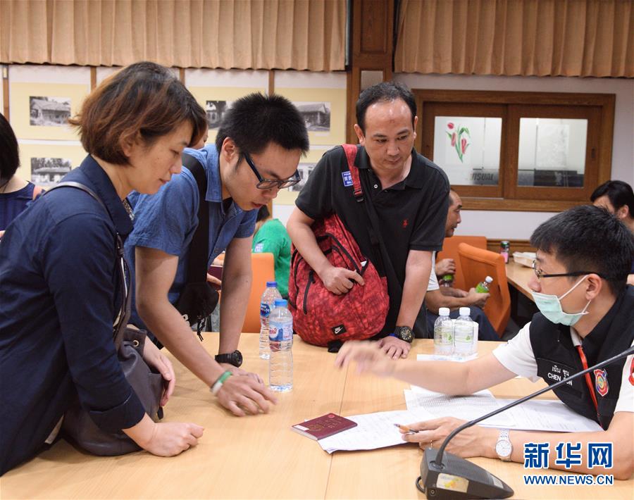 7月9日,在泰国普吉岛的哇集拉医院,来自苏梅岛的旅游警察志愿者(右)帮助遇难者家属做确认遗体登记工作。泰国普吉岛附近5日发生游船翻沉事故后,大批中泰两国志愿者纷纷加入,尽其所能提供帮助,成为救援大军中不可或缺的力量。新华社记者 秦晴 摄