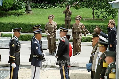 资料图片:1998年7月,朝鲜通过板门店归还3具美军遗骸。(图片来源:韩联社)