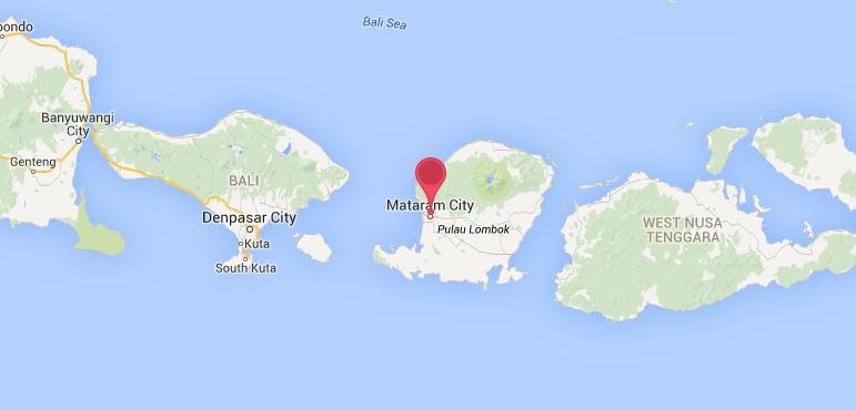 龙目岛所在位置示意图,(左边为巴厘岛)