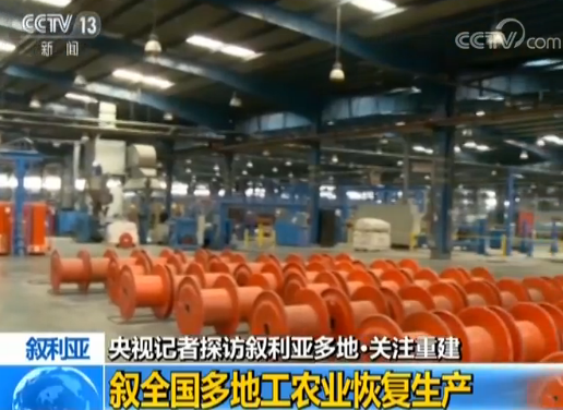 央视记者 王晓雪:在这家变电(压)器厂,我们也可以看到现场的车间里有很多工人正在进行作业,那么这也是叙利亚在战后重建的另外一座变电(压)器厂,也为当地的居民提供了很多生活(收入)来源。