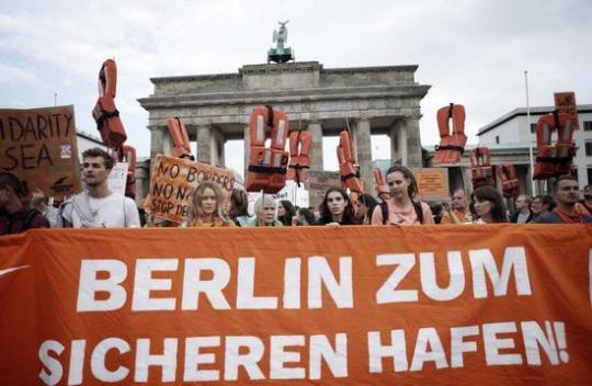 环球网报道 “柏林是难民的安全港湾”,据德国《每日镜报》消息,当地时间9月2日,来自“海桥”组织的数千人在德国柏林和汉堡举行游行,要求柏林参议院,自愿接收地中海难民。