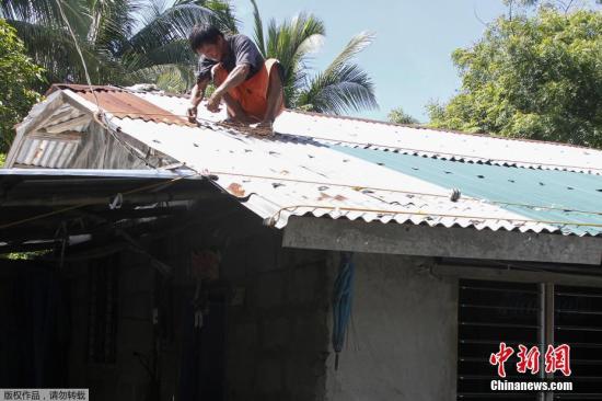 当地时间9月13日,菲律宾伊洛科斯省居民加固房屋,为抵御即将到来的超强台风“山竹”做准备。