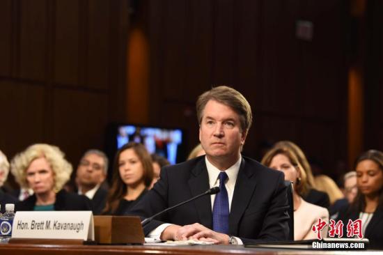 当地时间9月4日,被美国总统特朗普提名担任联邦最高法院大法官的布雷特·卡瓦诺出席参议院司法委员会对他的提名听证会。中新社记者 邓敏 摄