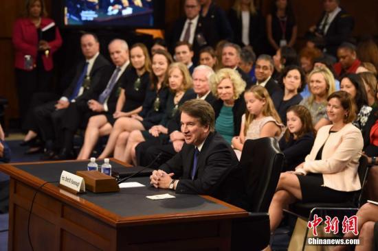 当地时间9月4日,被美国总统特朗普提名担任联邦最高法院大法官的布雷特·卡瓦诺出席参议院司法委员会对他的提名听证会。中新社记者 邓敏 摄