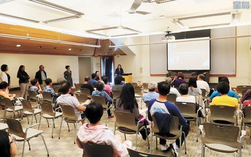 美国加州圣塔克拉利塔县图书馆萨拉托加分馆放映电影《排华法案》。 (美国《星岛日报》/王庆伟 摄)