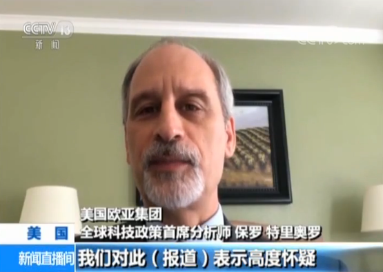 美国欧亚集团全球科技政策首席分析师 保罗·特里奥罗:网络安全界对此(报道)非常关注,我们对此(报道)表示高度怀疑,现在可以看到,至今还没有美国政府官员可以证实报道所提到的内容和观点。