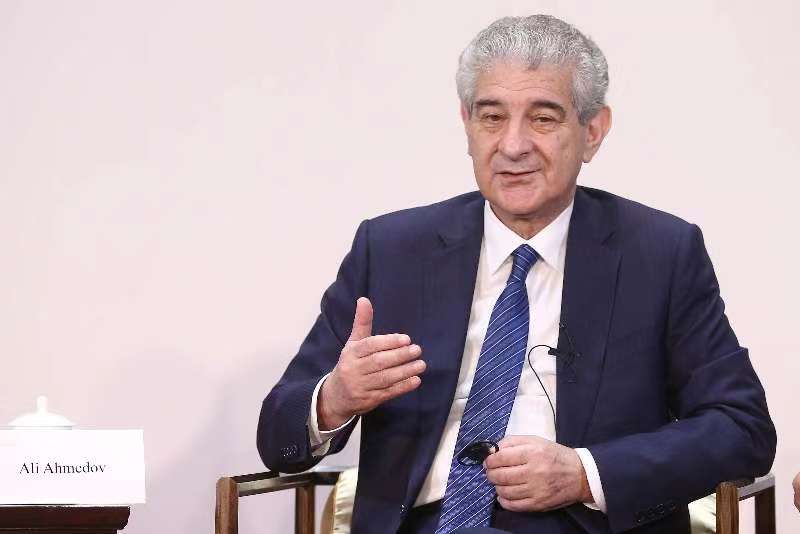 阿赫梅多夫说,阿塞拜疆积极支持“一带一路”建设,希望将本国的发展战略与“一带一路”倡议对接,实现合作共赢,特别是依托其独特的地理优势,发挥交通、物流和商务中枢的作用。他同时指出,“一带一路”倡议不仅可以促进阿塞拜疆铁路和海洋运输经济,也将通过民间交流繁荣阿塞拜疆的文化。他认为,“一带一路”倡议正在改变世界,促进世界的经济结构的优化和文明发展。他期待“一带一路”倡议有力推动人类命运共同体建设,从而促进世界共同繁荣。