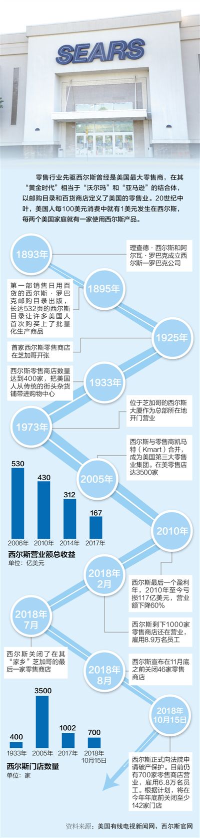 日前,美国西尔斯百货正式向法院申请破产保护。这家百年老店曾是美国零售业的标杆,影响了几代美国人的生活,如今在持续多年业绩不佳和债台高筑后走向破产,再次引发美国各界关于实体零售店如何在互联网经济时代生存的思考与讨论。