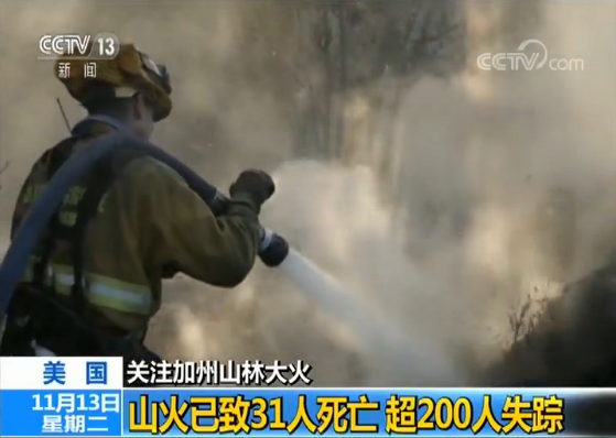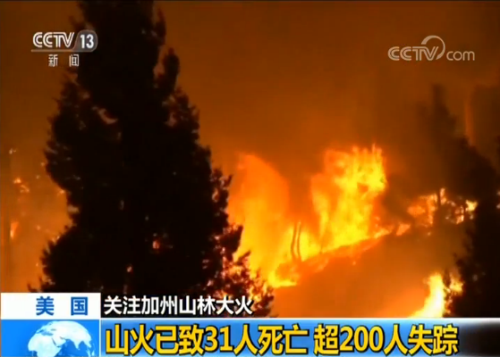 目前,加州南北两端的山火已经造成31人死亡。其中,北部的“坎普山火”造成29人死亡,这个数字已经与加州有记录以来导致最多人死亡的“格里菲斯公园山火”持平。另外根据比尤特县官方公布的消息,截至当地时间12号早些时候,仍有228人在“坎普山火”中失踪。路透社说,“坎普山火”已成为加州历史上最具破坏力的山火。官方表示,山火会在当地强风的作用下继续蔓延,预计强风会持续到当地时间的13号晚间。