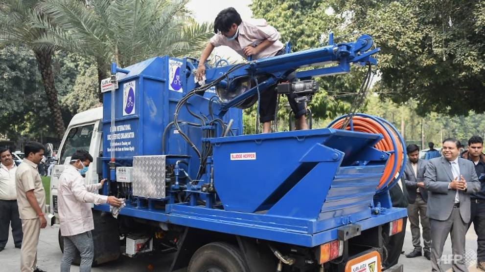 【环球网综合报道】每年,印度都有成百上千的城市下水道“掏粪工”在作业时失去生命。为了帮助解决这一问题,印度一个致力于提升卫生服务和环境清洁工作的非政府机构最新推出一款下水道清洁机器。该机器在11月19日“世界厕所日”这天正式亮相。