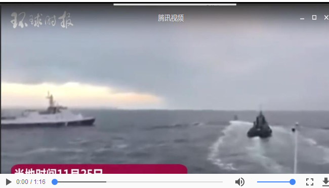 视频:乌克兰军舰与俄罗斯军舰在刻赤海峡附近发生碰撞