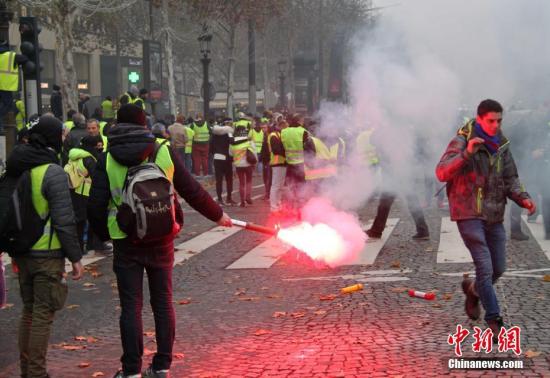 当地时间11月24日,超过10万法国民众走上街头,参加“黄背心”抗议活动,当天,巴黎有大约8000人参加了抗议活动。在巴黎的抗议活动中,至少有5000名抗议者涌入香榭丽舍大街,导致该地区著名国际奢侈品商店被迫歇业。