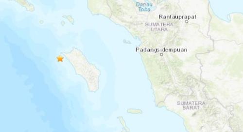 印尼西部附近海域发生5.0级地震。(图片来源:美国地质勘探局网站截图)